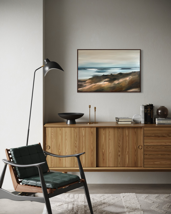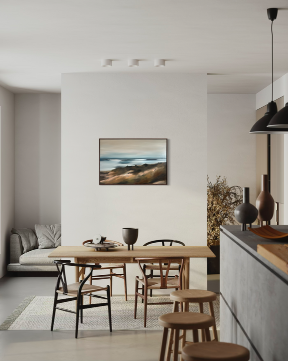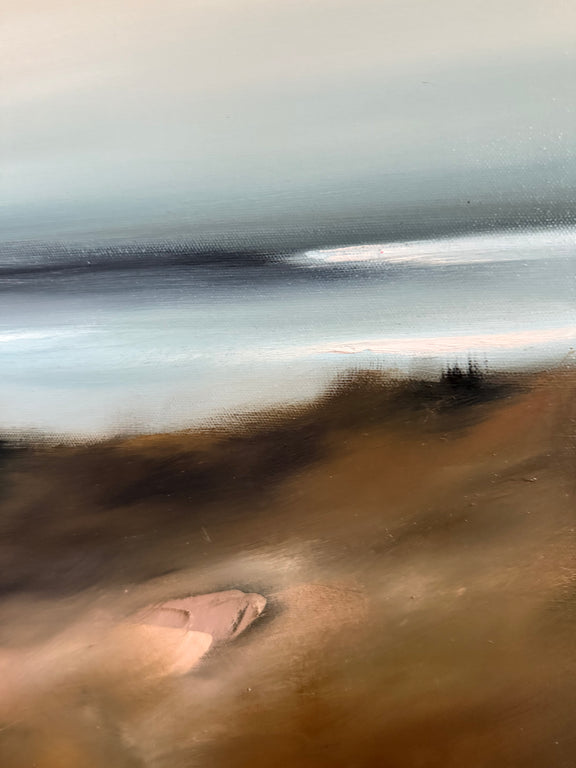 Layers of color and movement flow across the surface, echoing the rhythm of wind, water, and stone. The palette feels both grounded and luminous, inviting the viewer to pause and take in the sense of space, history, and stillness held within the scene.