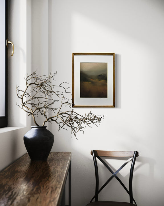 I purchased this beautiful landscape for over my bed, party because it felt like it could be a part of my local landscape. but more because I just loved the view. It felt serene and peaceful, but also a bit moody in the best way. The print is very high quality, came in a giant and secure box and went directly up on my wall. It just looks fantastic--I love Maggie's art!