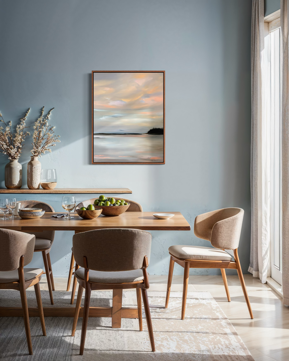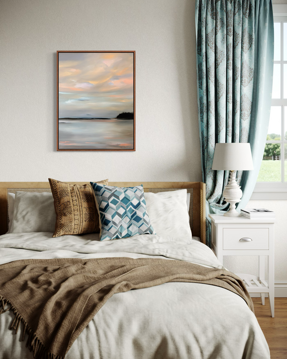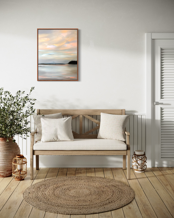 Inspired by the softer side of Maine’s enduring coastline and the way certain landscapes seem to exist outside of time, this painting is an ode to quiet moments—those we carry with us long after the light fades.