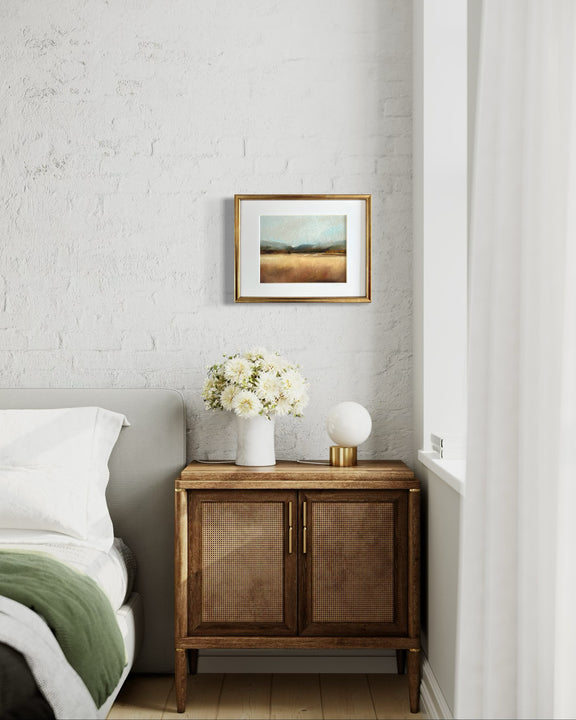 I purchased this beautiful landscape for over my bed, party because it felt like it could be a part of my local landscape. but more because I just loved the view. It felt serene and peaceful, but also a bit moody in the best way. The print is very high quality, came in a giant and secure box and went directly up on my wall. It just looks fantastic--I love Maggie's art!
