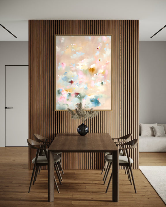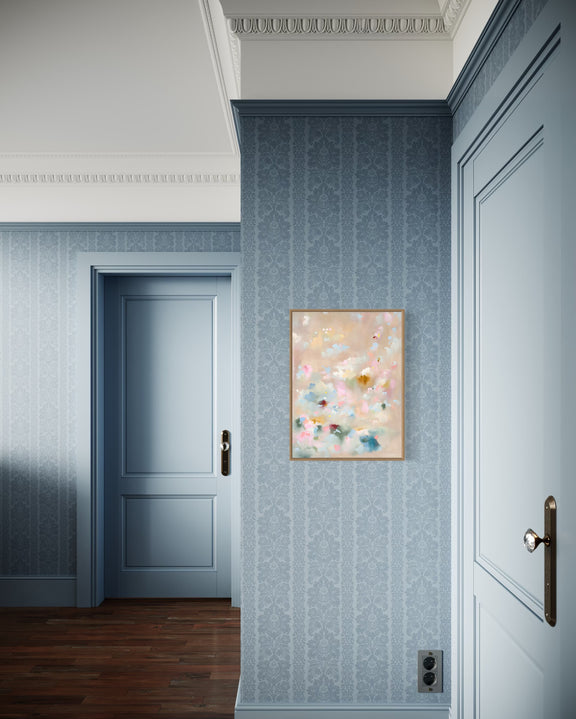 I’ve been following Maggie for a while and was lucky enough to invest in a piece from her latest collection. I love the colors, subject and brush strokes. The painting works perfectly with the colors of my entry and living room and this piece is a little escape each time I come home.