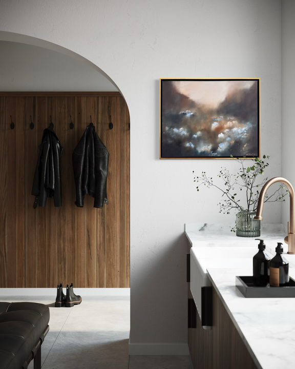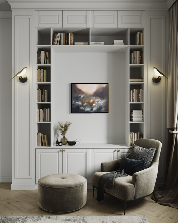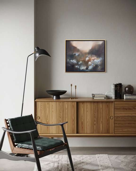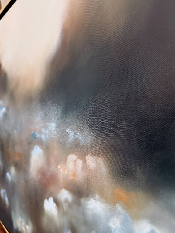Rich pallet work and subtle layering give the piece a sense of dreaminess and depth, inviting the eye to wander slowly across the field and discover new details with each viewing.