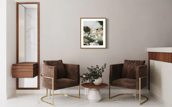I purchased this beautiful landscape for over my bed, party because it felt like it could be a part of my local landscape. but more because I just loved the view. It felt serene and peaceful, but also a bit moody in the best way. The print is very high quality, came in a giant and secure box and went directly up on my wall. It just looks fantastic--I love Maggie's art!