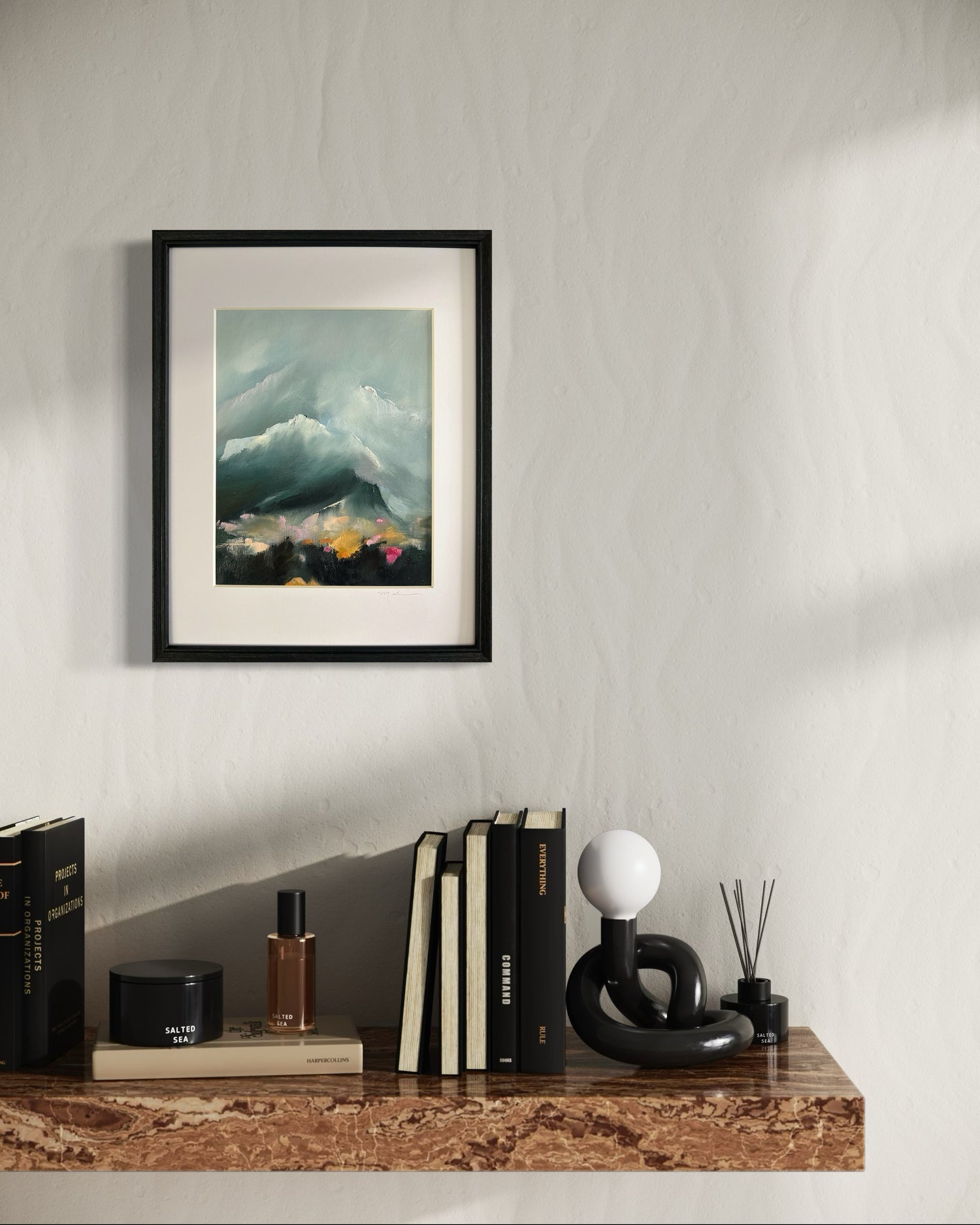 I purchased this beautiful landscape for over my bed, party because it felt like it could be a part of my local landscape. but more because I just loved the view. It felt serene and peaceful, but also a bit moody in the best way. The print is very high quality, came in a giant and secure box and went directly up on my wall. It just looks fantastic--I love Maggie's art!