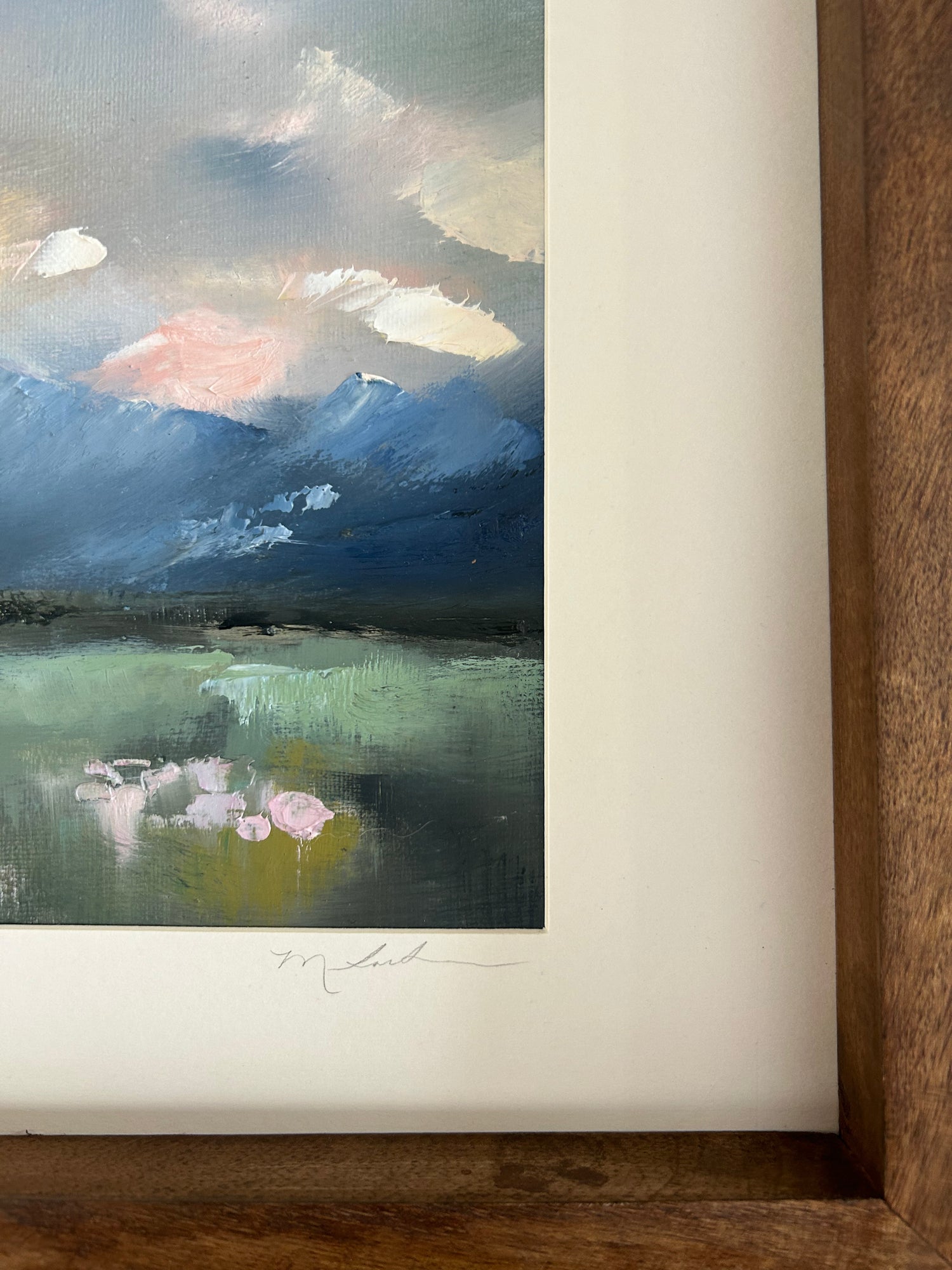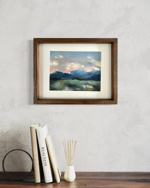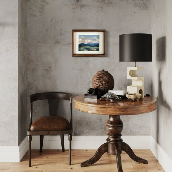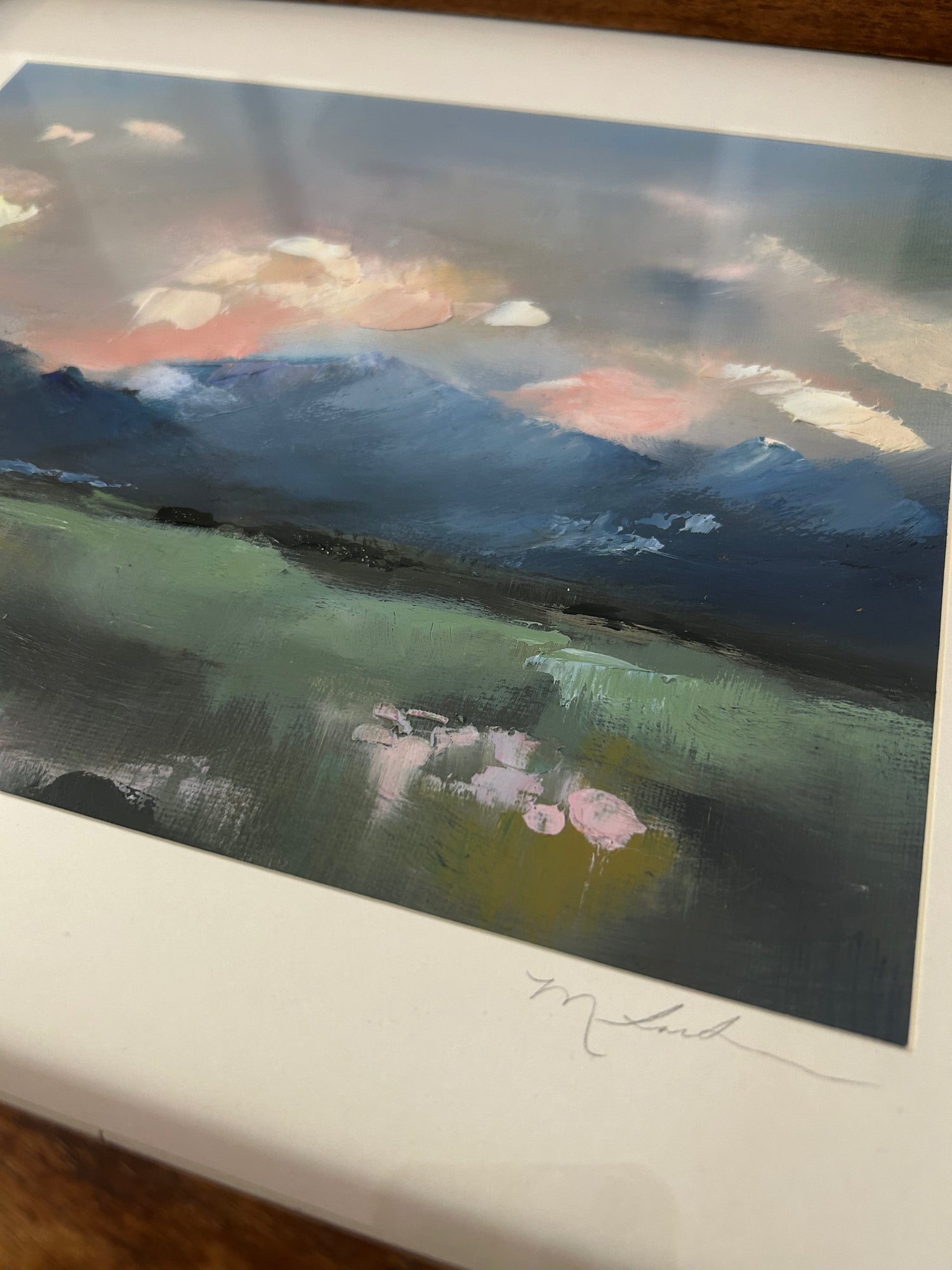 I purchased this beautiful landscape for over my bed, party because it felt like it could be a part of my local landscape. but more because I just loved the view. It felt serene and peaceful, but also a bit moody in the best way. The print is very high quality, came in a giant and secure box and went directly up on my wall. It just looks fantastic--I love Maggie's art!
