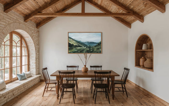 I purchased this beautiful landscape for over my bed, party because it felt like it could be a part of my local landscape. but more because I just loved the view. It felt serene and peaceful, but also a bit moody in the best way. The print is very high quality, came in a giant and secure box and went directly up on my wall. It just looks fantastic--I love Maggie's art!