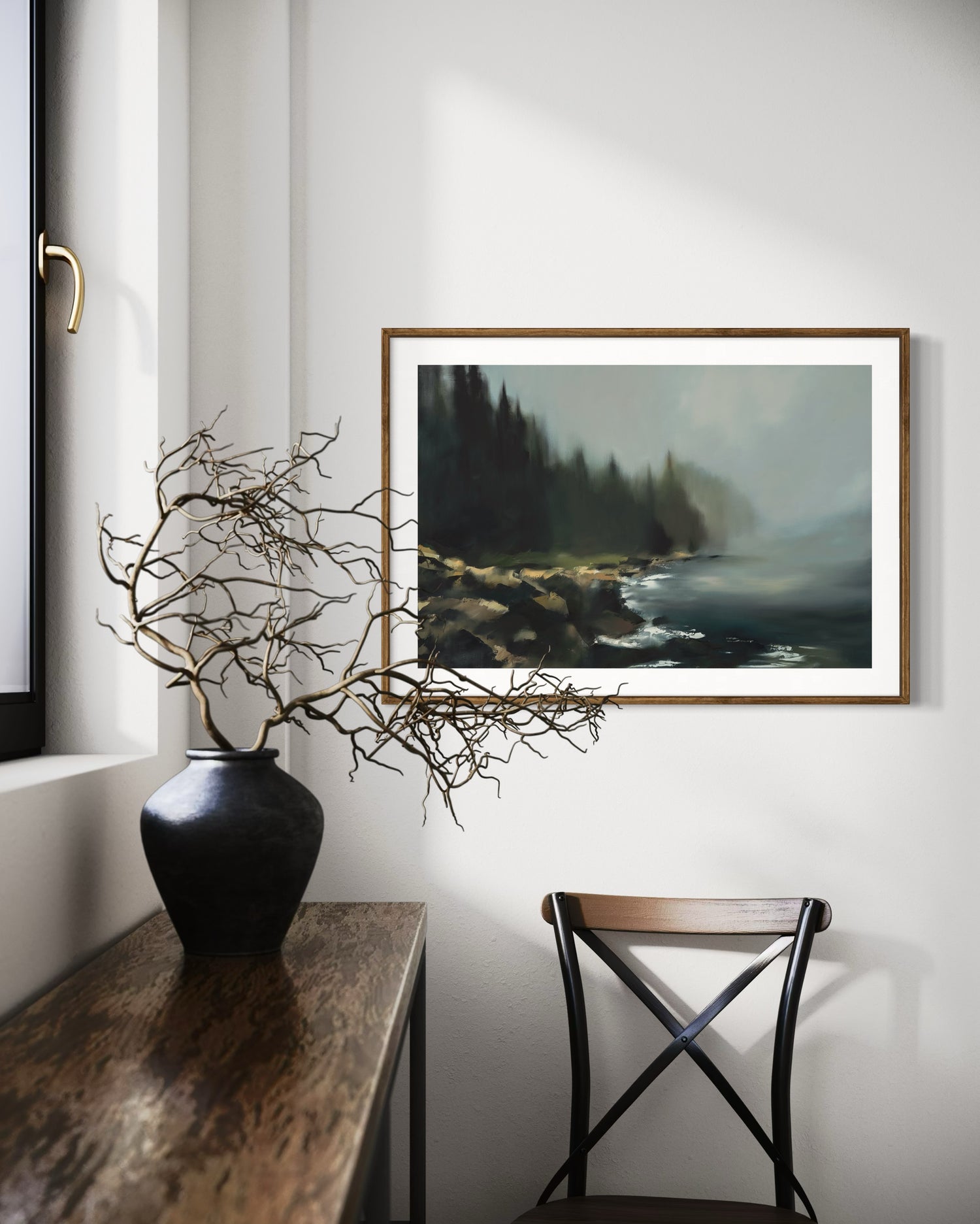 I’ve been admiring Maggie’s lovely paintings for several months and finally decided to purchase. The print is moody, complicated, and looks perfectly at home in our dining room. I opted for the frame and I’m so pleased with it as well.