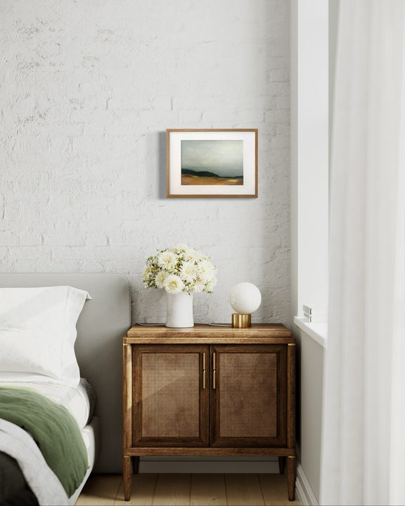 I purchased this beautiful landscape for over my bed, party because it felt like it could be a part of my local landscape. but more because I just loved the view. It felt serene and peaceful, but also a bit moody in the best way. The print is very high quality, came in a giant and secure box and went directly up on my wall. It just looks fantastic--I love Maggie's art!
