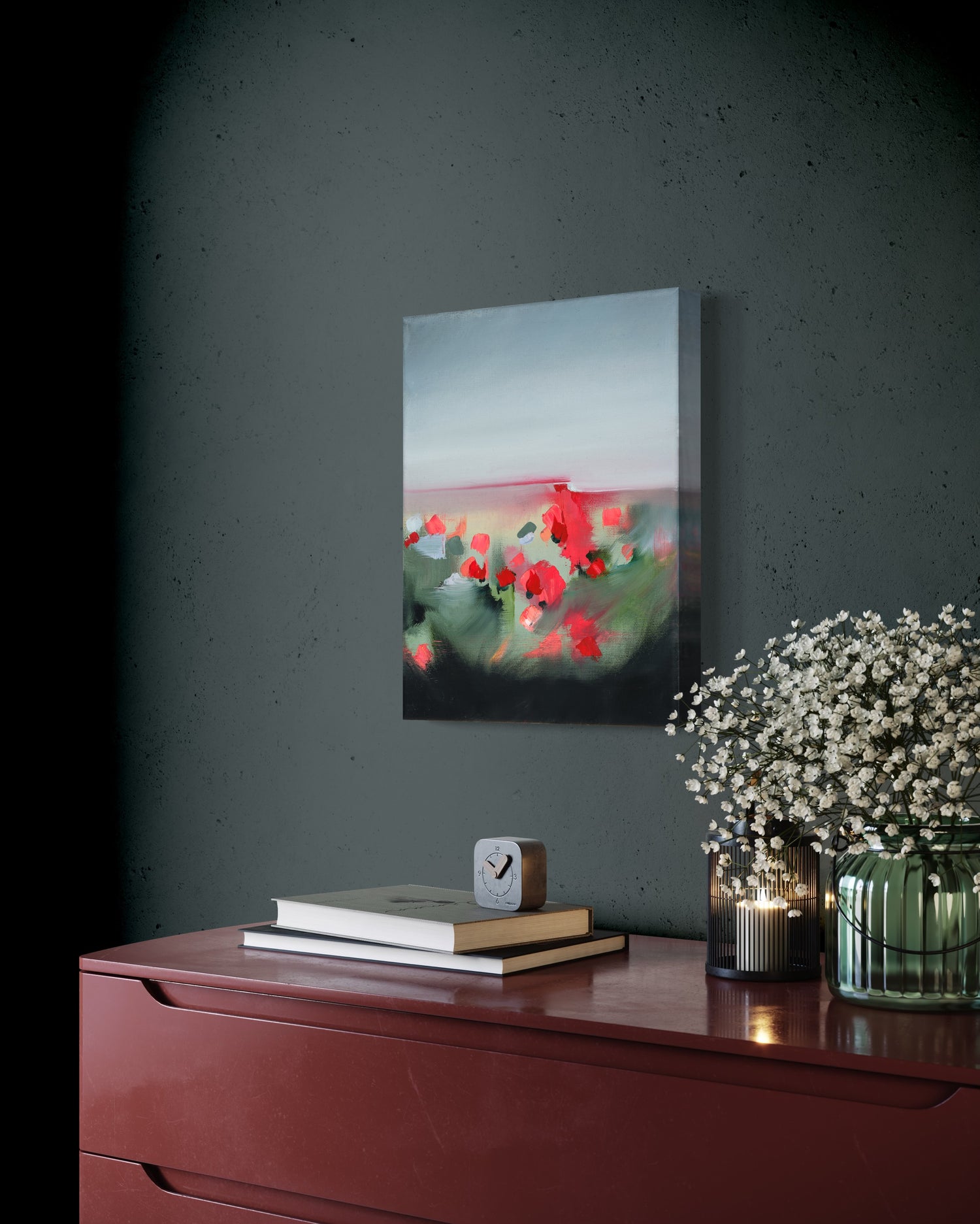 I’ve been following Maggie for a while and was lucky enough to invest in a piece from her latest collection. I love the colors, subject and brush strokes. The painting works perfectly with the colors of my entry and living room and this piece is a little escape each time I come home.
