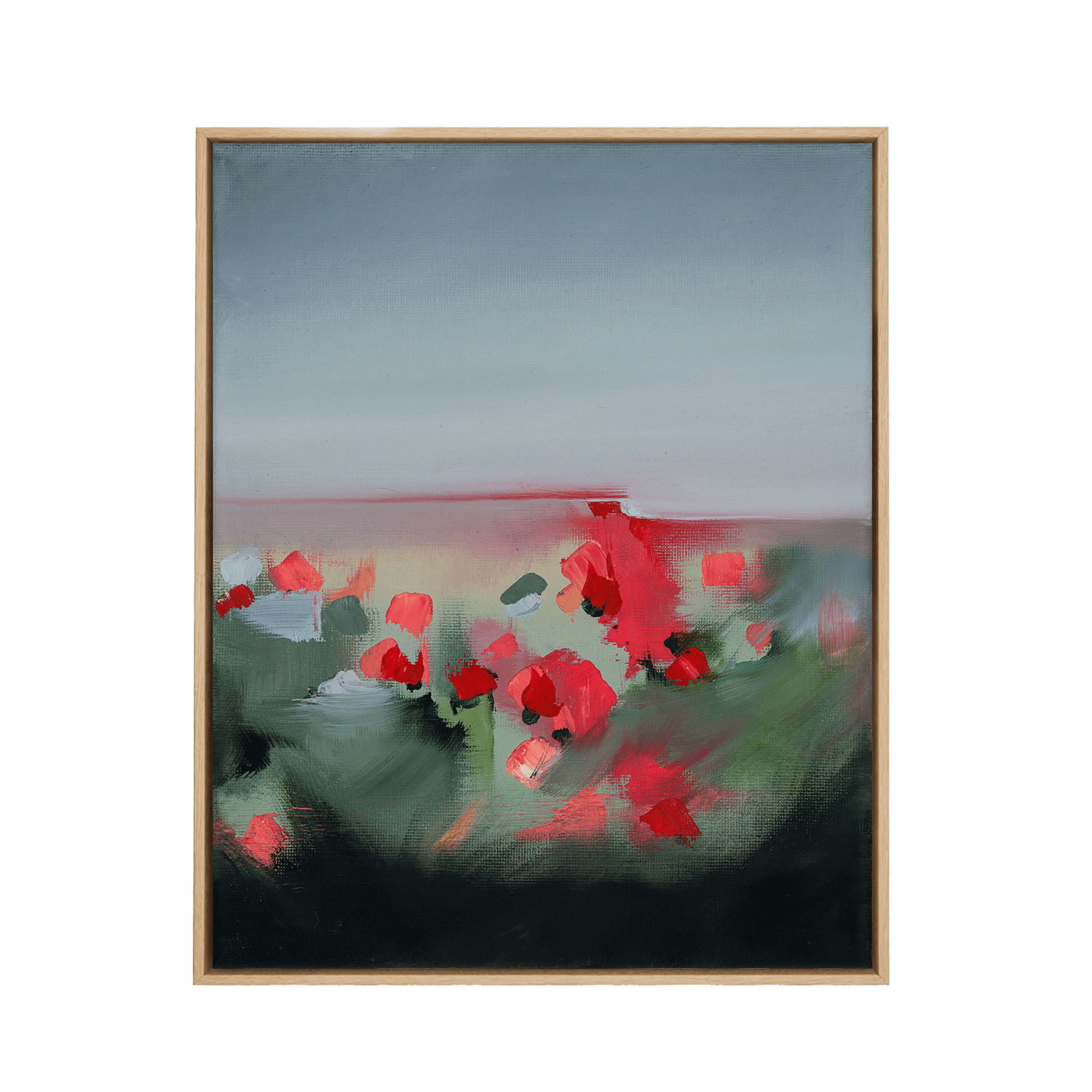 I ordered this and another piece as paper prints. They are truly beautiful in person. The bright red poppies against the blue sky make me so happy every time I see it.