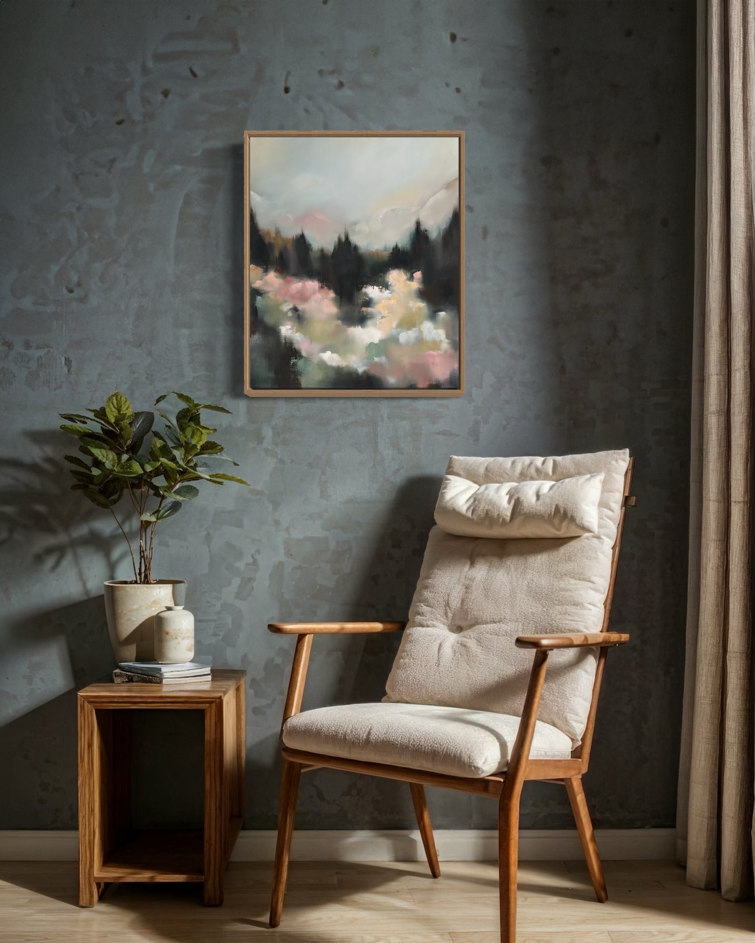 I purchased this beautiful landscape for over my bed, party because it felt like it could be a part of my local landscape. but more because I just loved the view. It felt serene and peaceful, but also a bit moody in the best way. The print is very high quality, came in a giant and secure box and went directly up on my wall. It just looks fantastic--I love Maggie's art!