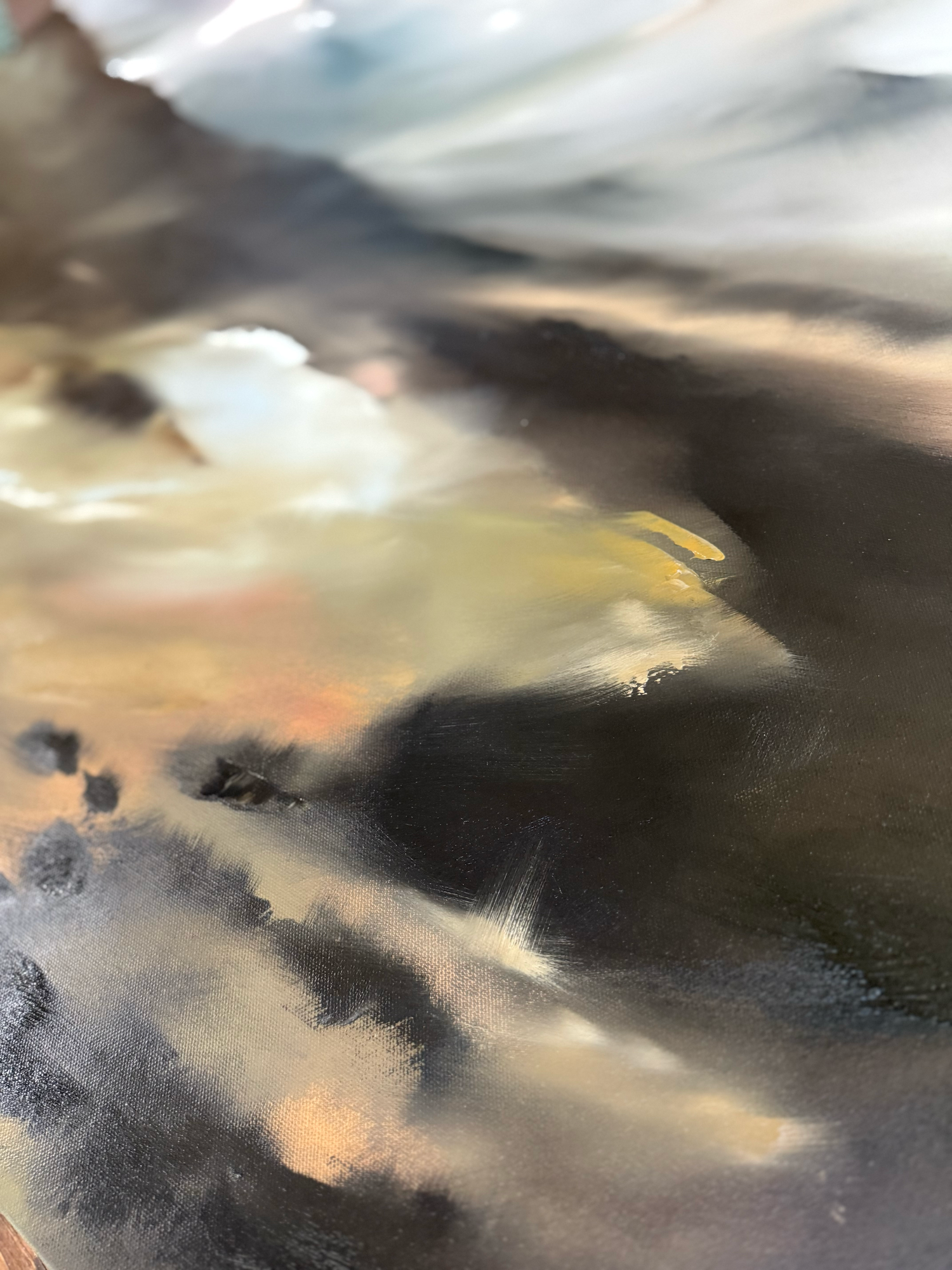 I purchased this beautiful landscape for over my bed, party because it felt like it could be a part of my local landscape. but more because I just loved the view. It felt serene and peaceful, but also a bit moody in the best way. The print is very high quality, came in a giant and secure box and went directly up on my wall. It just looks fantastic--I love Maggie's art!