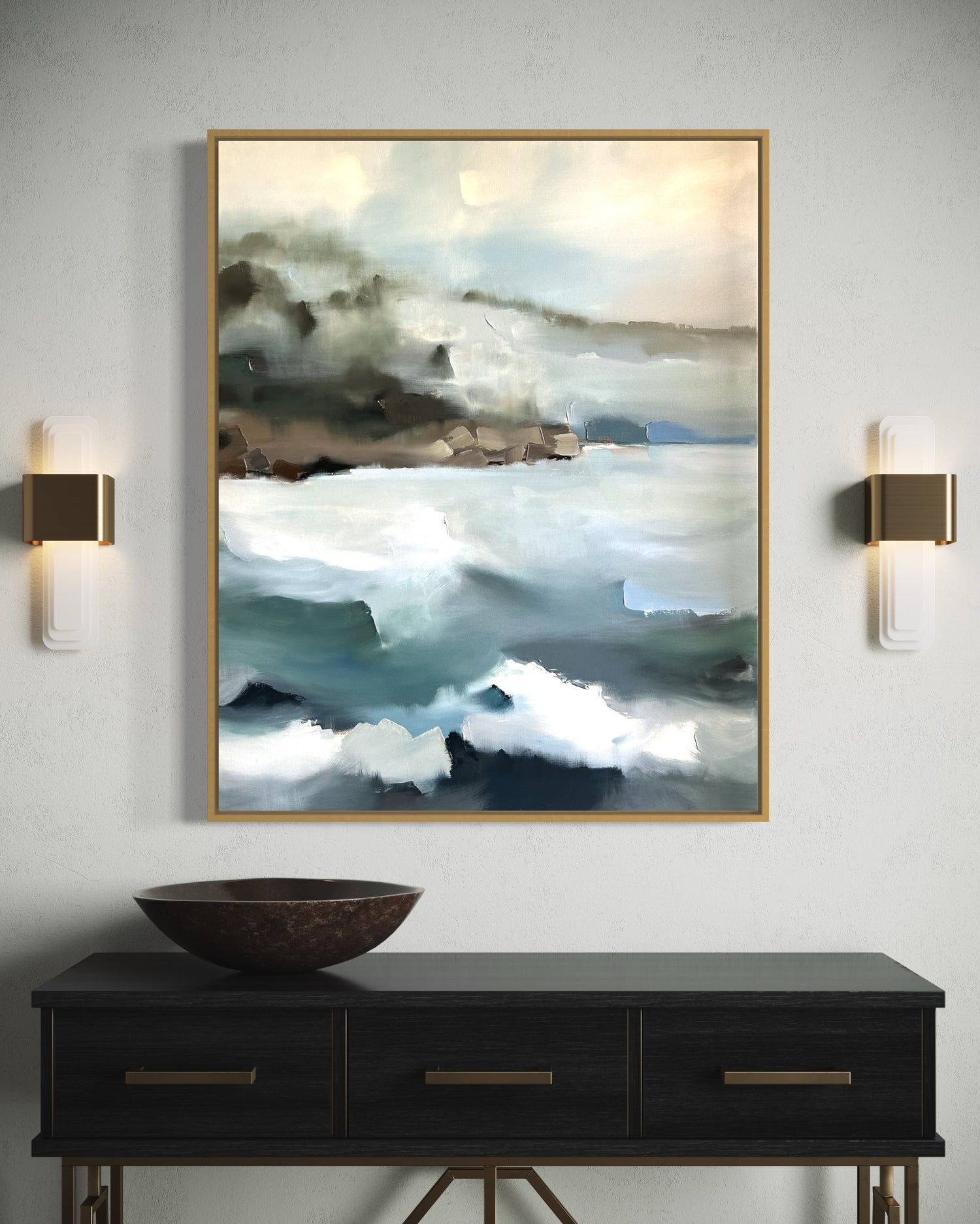 I’ve been following Maggie for a while and was lucky enough to invest in a piece from her latest collection. I love the colors, subject and brush strokes. The painting works perfectly with the colors of my entry and living room and this piece is a little escape each time I come home.