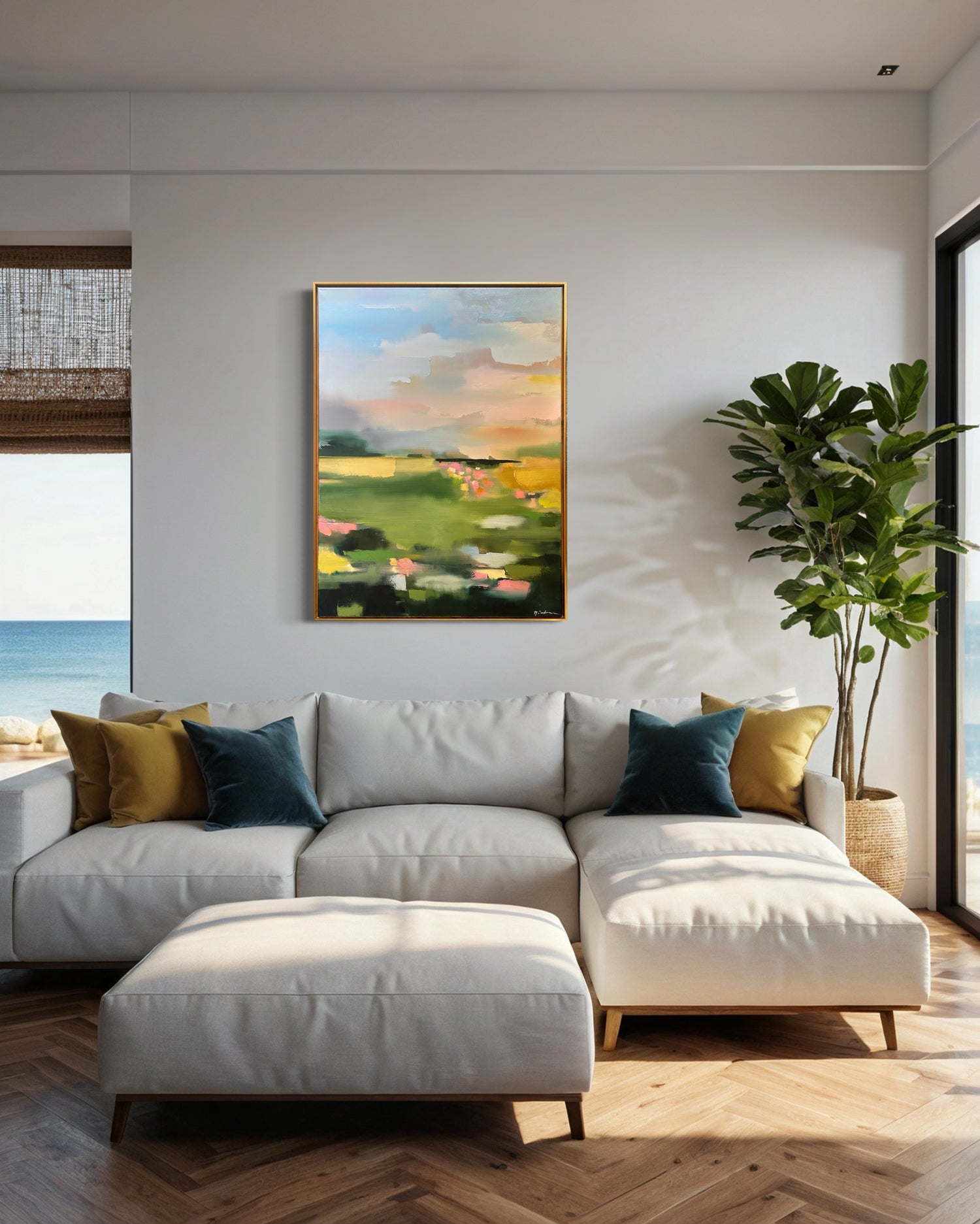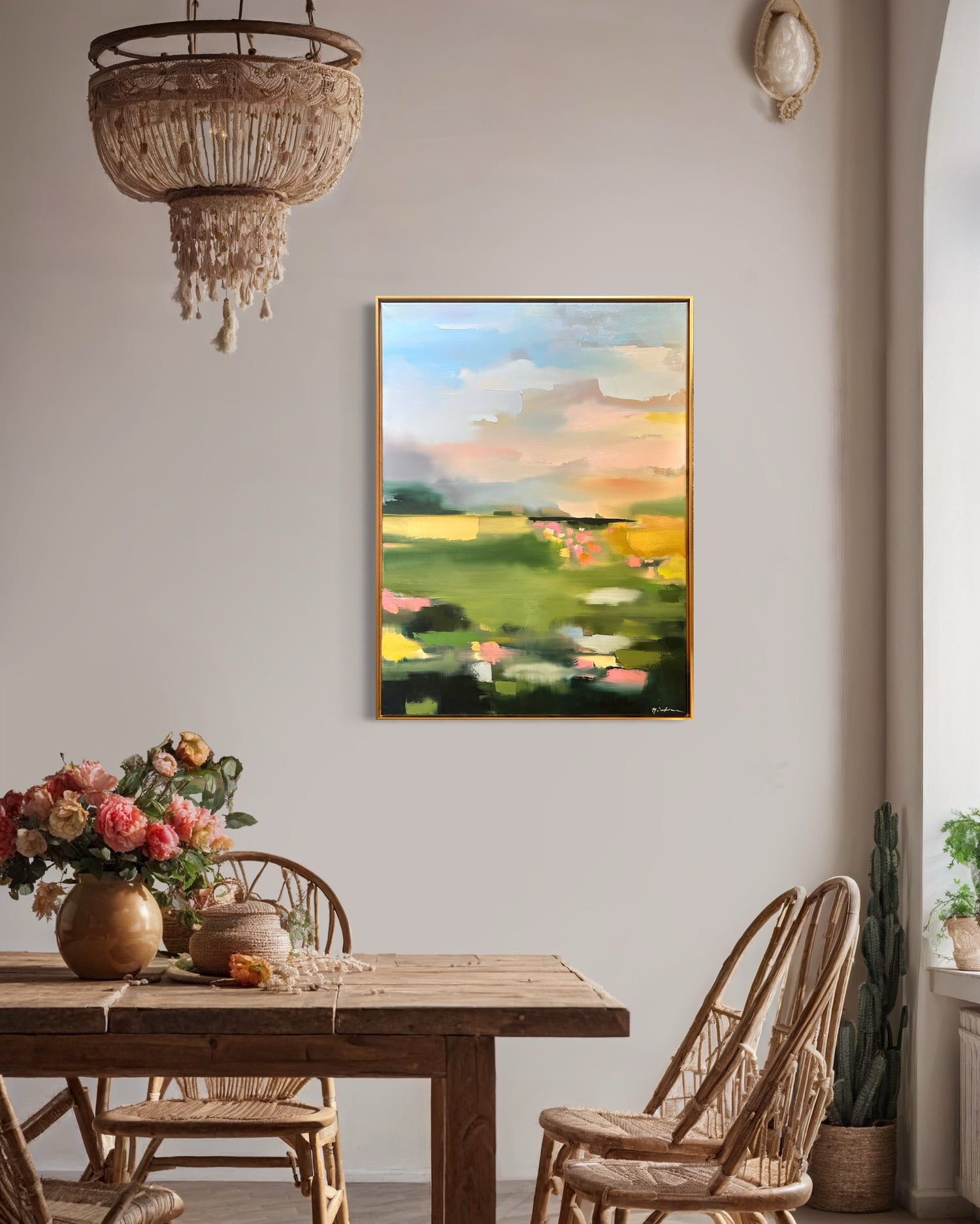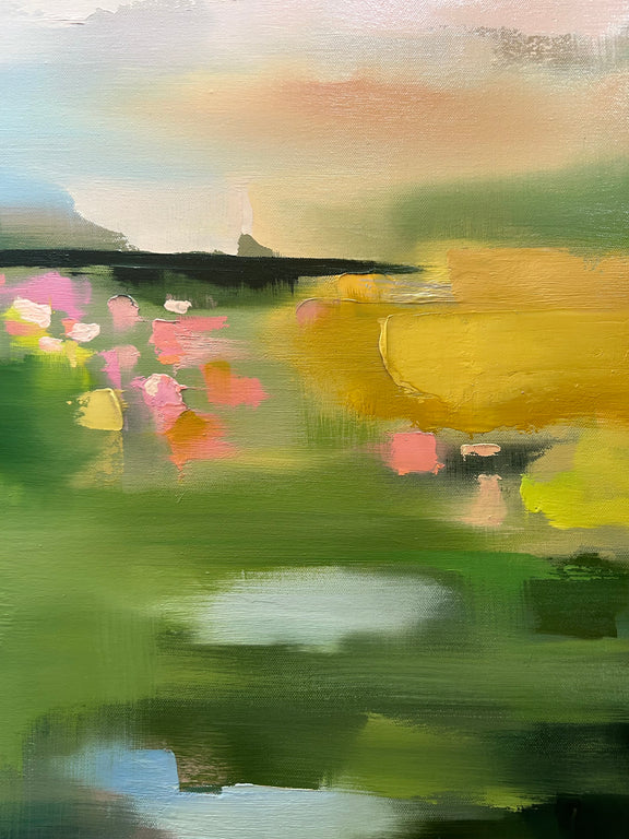 I’ve been following Maggie for a while and was lucky enough to invest in a piece from her latest collection. I love the colors, subject and brush strokes. The painting works perfectly with the colors of my entry and living room and this piece is a little escape each time I come home.