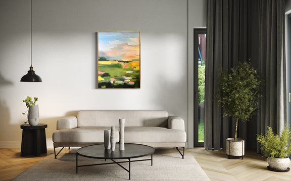 I purchased this beautiful landscape for over my bed, party because it felt like it could be a part of my local landscape. but more because I just loved the view. It felt serene and peaceful, but also a bit moody in the best way. The print is very high quality, came in a giant and secure box and went directly up on my wall. It just looks fantastic--I love Maggie's art!