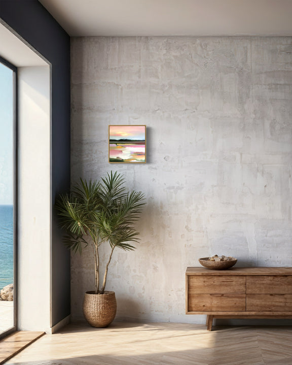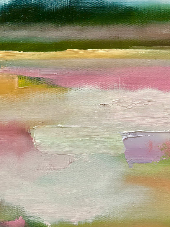 I’ve been following Maggie for a while and was lucky enough to invest in a piece from her latest collection. I love the colors, subject and brush strokes. The painting works perfectly with the colors of my entry and living room and this piece is a little escape each time I come home.