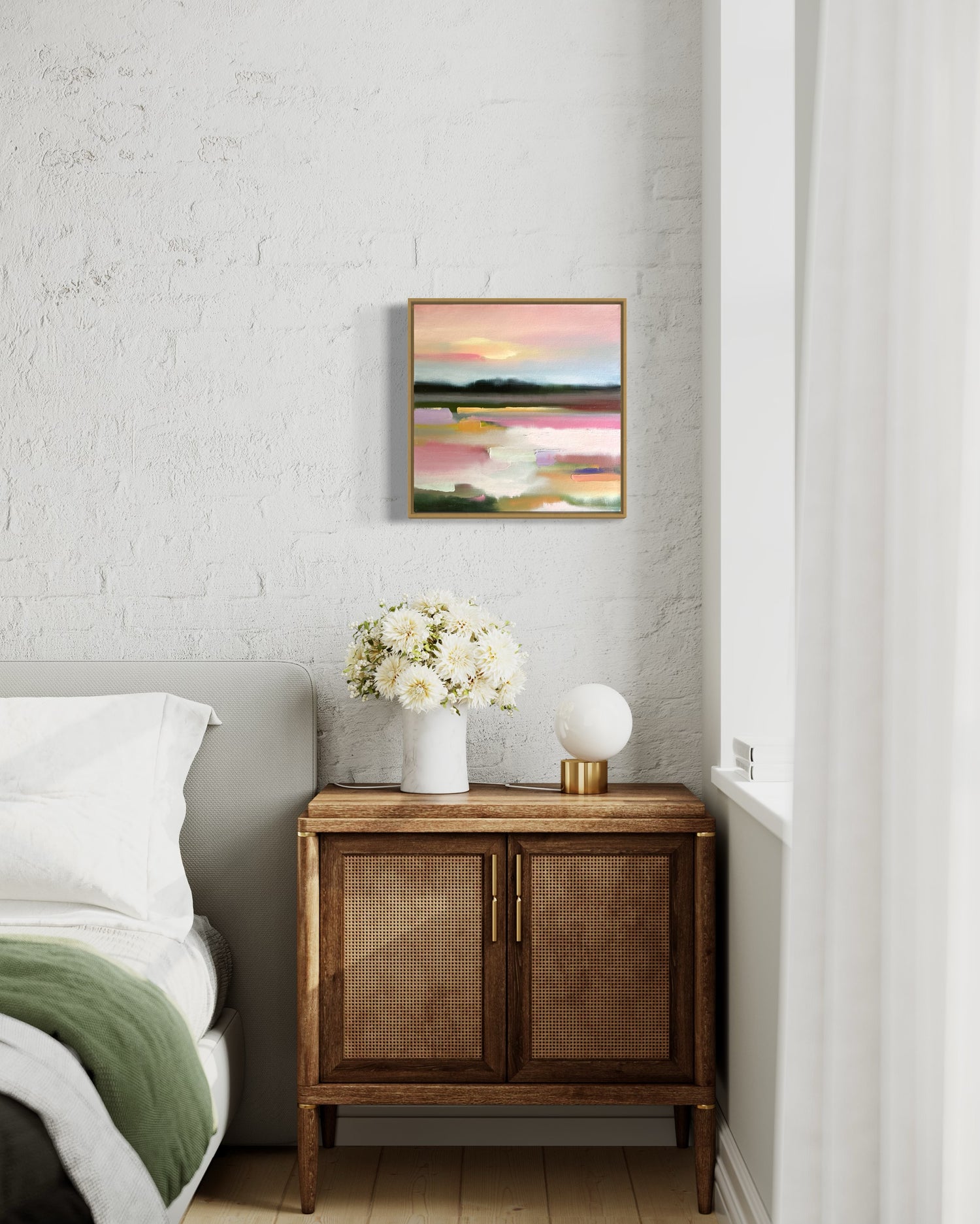 I’ve been admiring Maggie’s lovely paintings for several months and finally decided to purchase. The print is moody, complicated, and looks perfectly at home in our dining room. I opted for the frame and I’m so pleased with it as well.