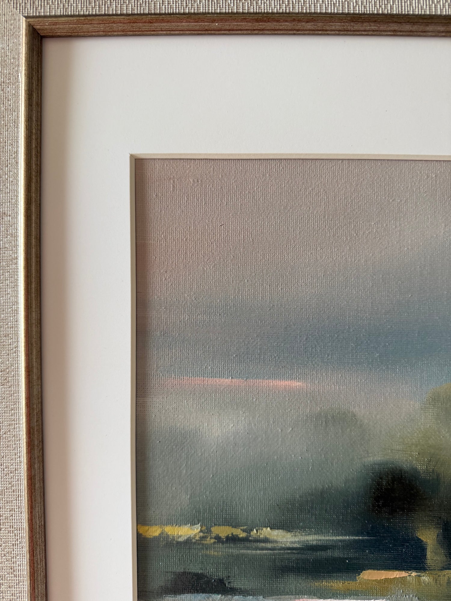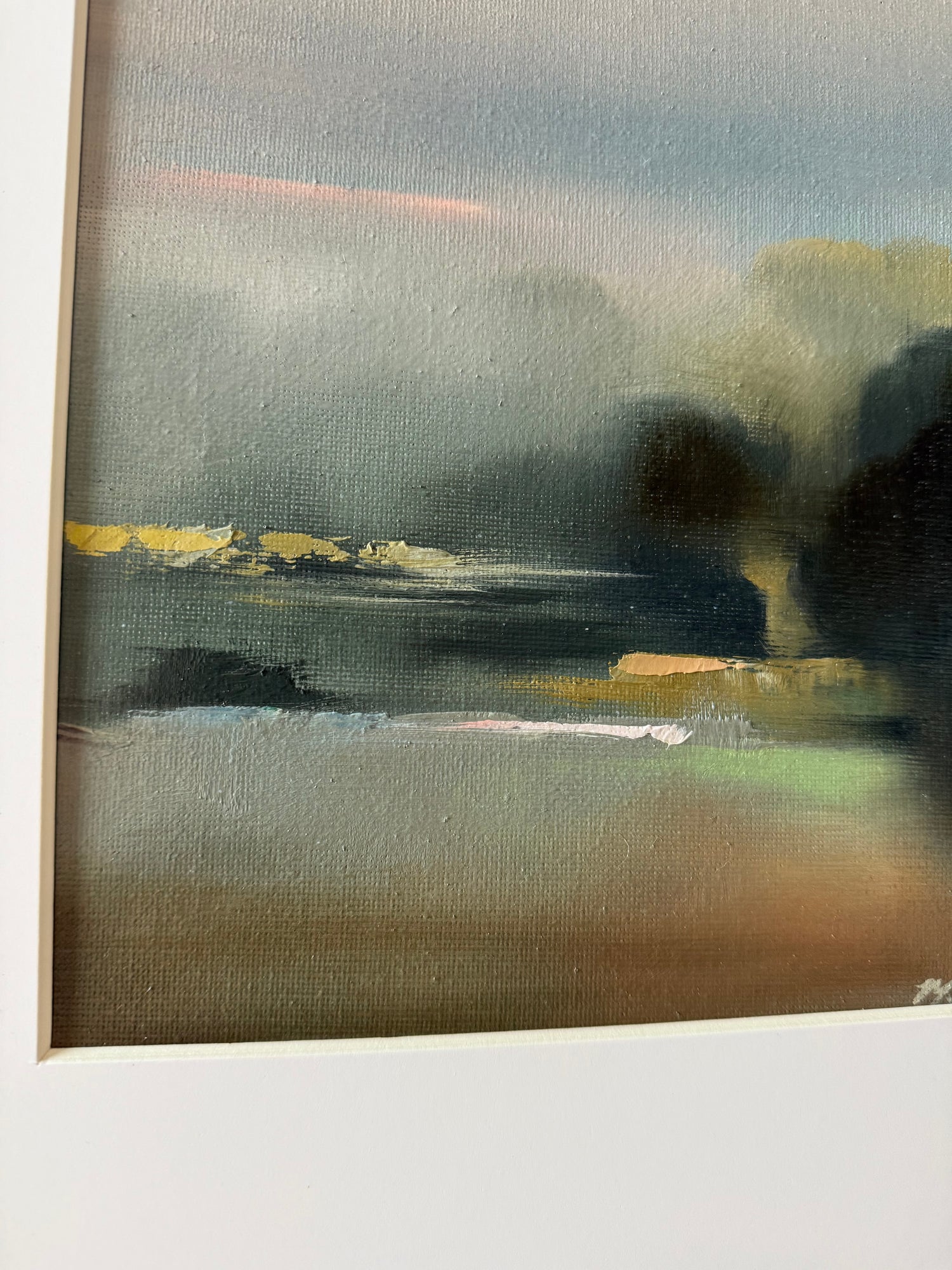 With delicate brushwork and layered textures, the piece conveys a peaceful, almost dreamlike atmosphere—inviting a moment of calm reflection. A perfect addition for anyone drawn to gentle landscapes with an understated color palette.