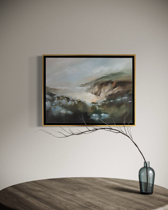 I purchased this beautiful landscape for over my bed, party because it felt like it could be a part of my local landscape. but more because I just loved the view. It felt serene and peaceful, but also a bit moody in the best way. The print is very high quality, came in a giant and secure box and went directly up on my wall. It just looks fantastic--I love Maggie's art!