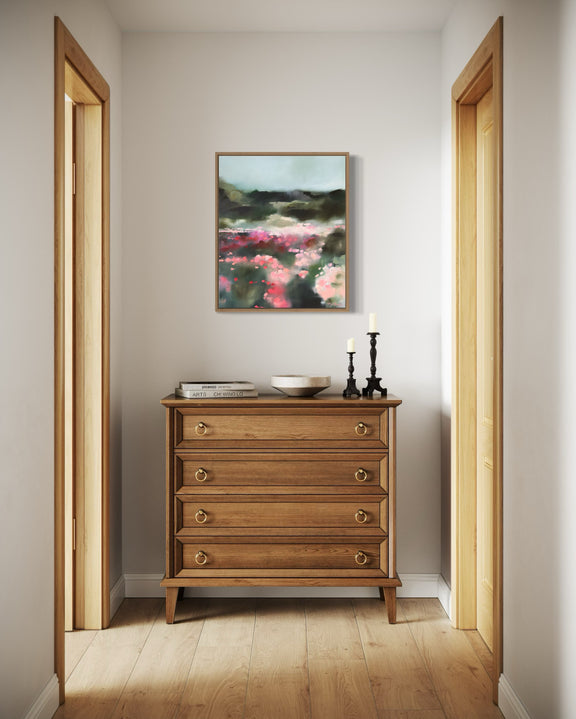 I purchased this beautiful landscape for over my bed, party because it felt like it could be a part of my local landscape. but more because I just loved the view. It felt serene and peaceful, but also a bit moody in the best way. The print is very high quality, came in a giant and secure box and went directly up on my wall. It just looks fantastic--I love Maggie's art!