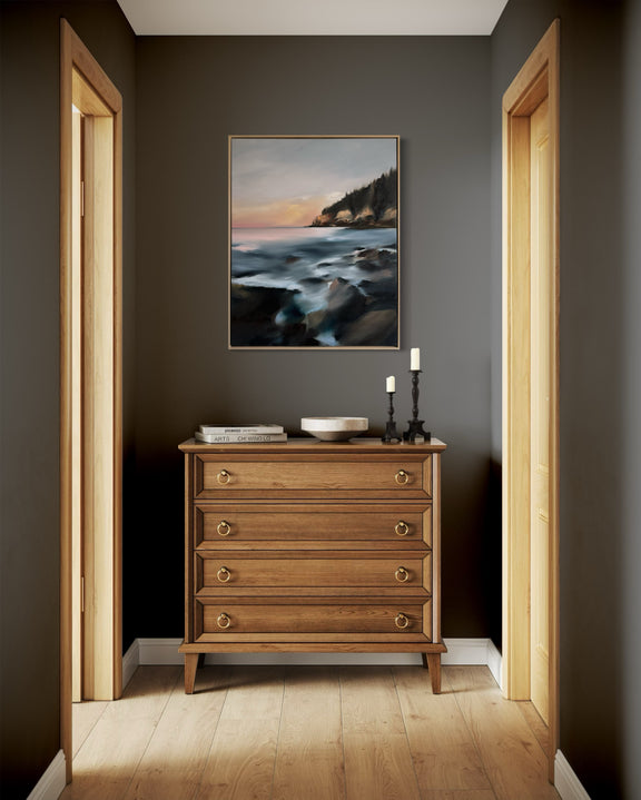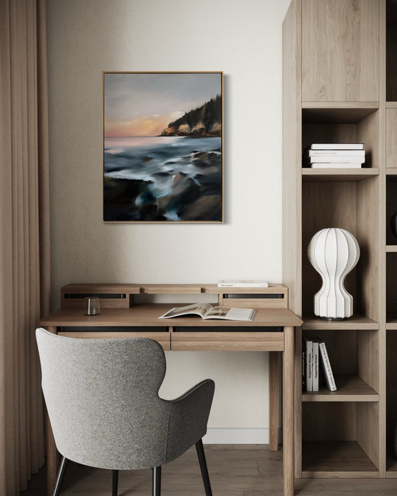 I purchased this beautiful landscape for over my bed, party because it felt like it could be a part of my local landscape. but more because I just loved the view. It felt serene and peaceful, but also a bit moody in the best way. The print is very high quality, came in a giant and secure box and went directly up on my wall. It just looks fantastic--I love Maggie's art!