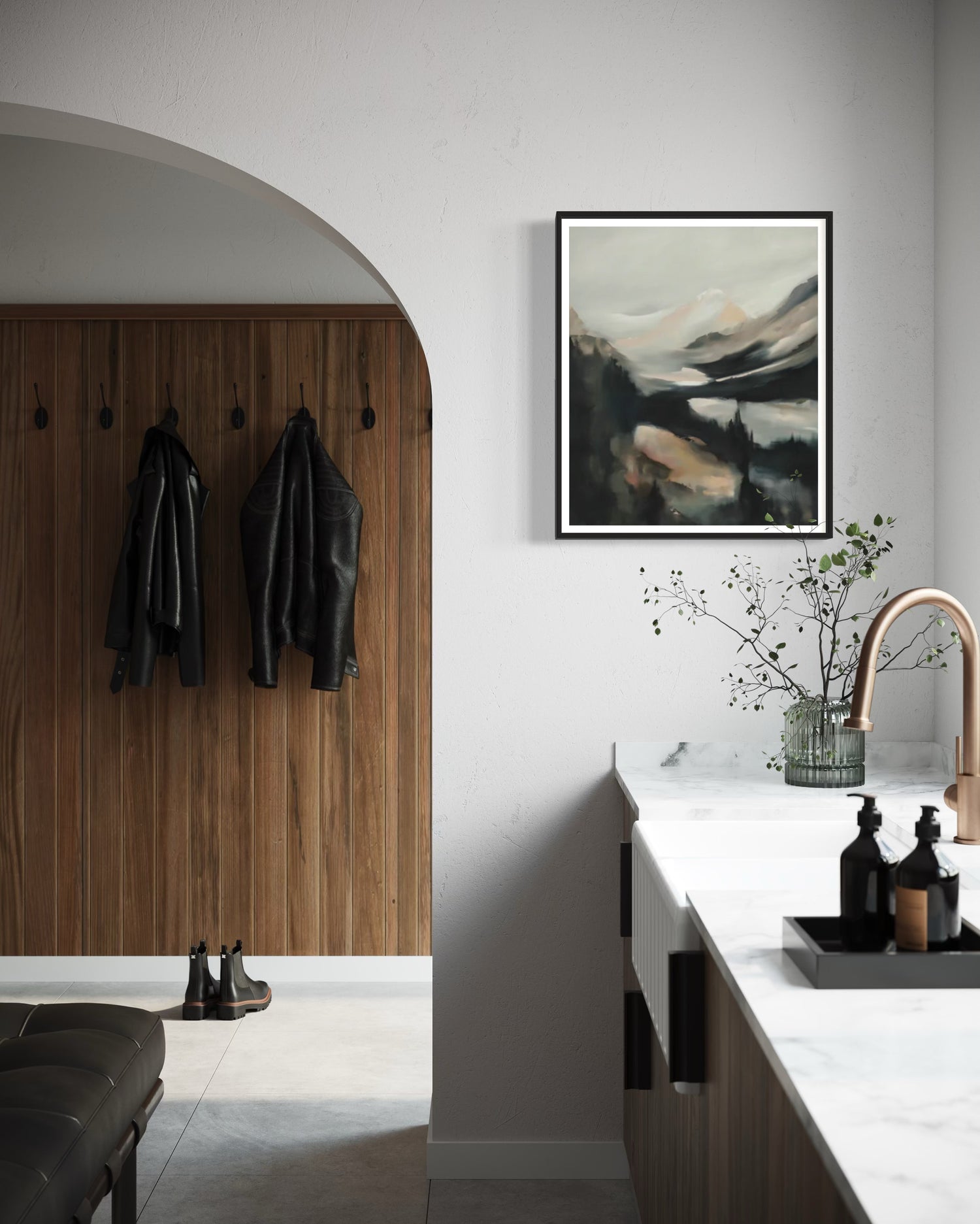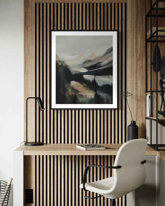 I purchased this beautiful landscape for over my bed, party because it felt like it could be a part of my local landscape. but more because I just loved the view. It felt serene and peaceful, but also a bit moody in the best way. The print is very high quality, came in a giant and secure box and went directly up on my wall. It just looks fantastic--I love Maggie's art!