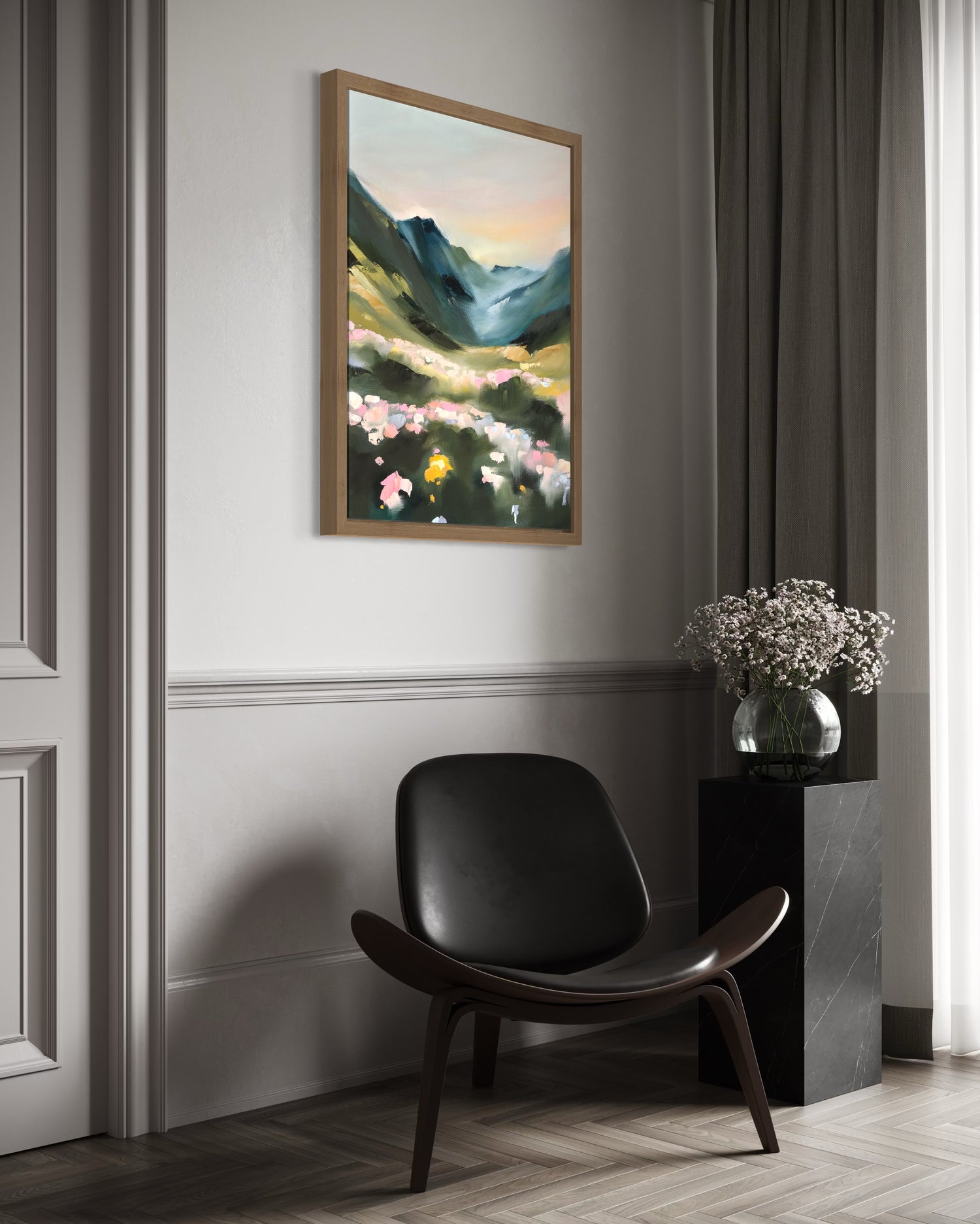 I purchased this beautiful landscape for over my bed, party because it felt like it could be a part of my local landscape. but more because I just loved the view. It felt serene and peaceful, but also a bit moody in the best way. The print is very high quality, came in a giant and secure box and went directly up on my wall. It just looks fantastic--I love Maggie's art!