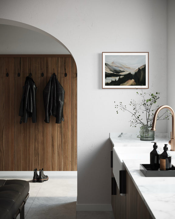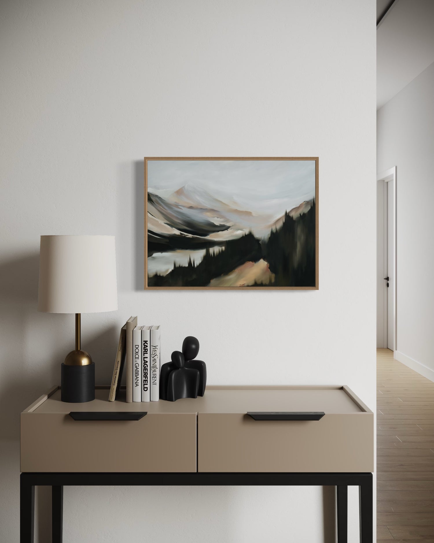 I purchased this beautiful landscape for over my bed, party because it felt like it could be a part of my local landscape. but more because I just loved the view. It felt serene and peaceful, but also a bit moody in the best way. The print is very high quality, came in a giant and secure box and went directly up on my wall. It just looks fantastic--I love Maggie's art!